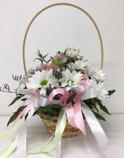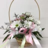Эта эксклюзивная композиция воплощает в себе нежность и элегантность. Кусты красивейших хризантем и альстромерий, обрамленные зеленью, создают неповторимое сочетание ярких оттенков, наполняющих пространство нежной ароматной гармонией. Роскошная корзина, тонко исполненная руками мастера, добавляет изысканности и шарма, придавая композиции завершенный вид. Гармония изысканных красок – это идеальный подарок для тех, кто ценит прекрасное и стремится окружить себя красотой и умиротворением.